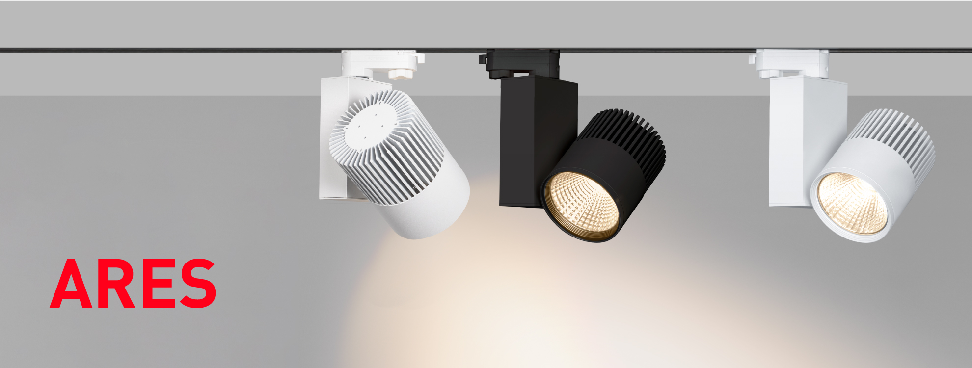 Трековые светильниики ARES — стильный минималистичный дизайн и превосходное исполнение. Светильники позволят создать локальное освещение в демонстрационных залах, торговых домах, офисных и других помещениях.