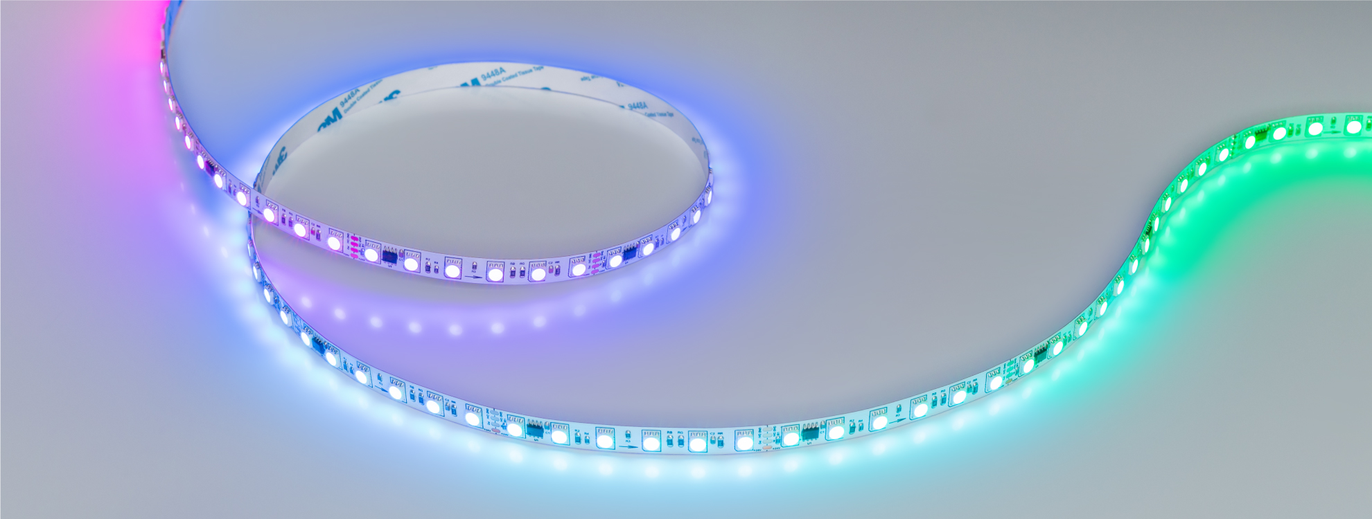 Плотность светодиодов на ленте составляет 72 шт/м. Тип светодиодов — RGB SMD 5060.