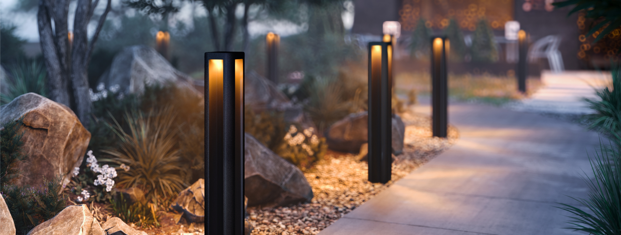 Теплый свет уличных боллардов FLINT — настрой на уютные прогулки. Свечение в четырех направлениях создает отличную подсветку парковых дорожек, террас, лужаек и придомовых территорий, подчеркивая естественные природные оттенки (CRI>80) элементов ландшафта и обеспечивая комфортную навигацию в темное время суток. Светильники с высокой степенью защиты IP65 устойчивы к попаданию воды и пыли.