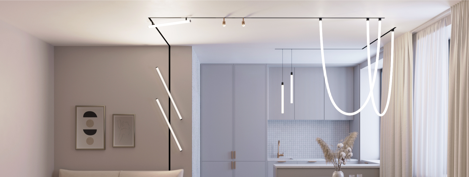 В этом видео мы поэтапно покажем, как пустить линию трека с потолка на стену во встроенном и накладном варианте монтажа.