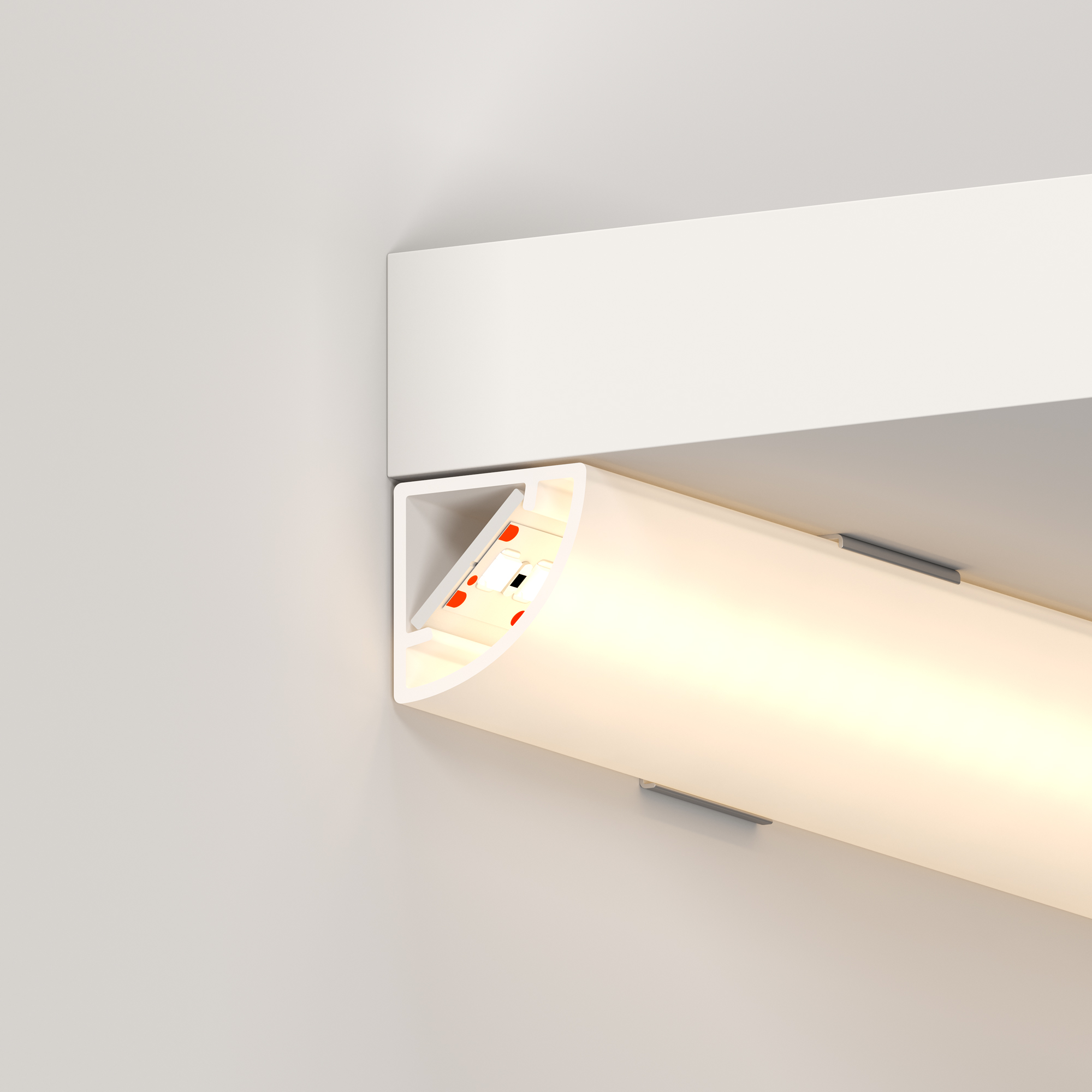 Угловой цельнолитой профиль из поликарбоната со встроенным полукруглым матовым экраном. Габаритные размеры профиля составляют 2000 мм в длину, 16 мм в ширину и 16 мм в высоту. Идущая в комплекте площадка для установки светодиодных лент из алюминия позволяет использовать ленту шириной до 11 мм и мощностью до 7,1 Вт/м. Для установки во влажных помещениях необходима герметизация при помощи двухкомпонентного эпоксидного герметика. Класс пылевлагозащиты – IP65 (при соблюдении технологии герметизации). Этот продукт представляет отличное решение для создания современных световых проектов и обеспечивает надежную и стильную основу для установки светодиодов.