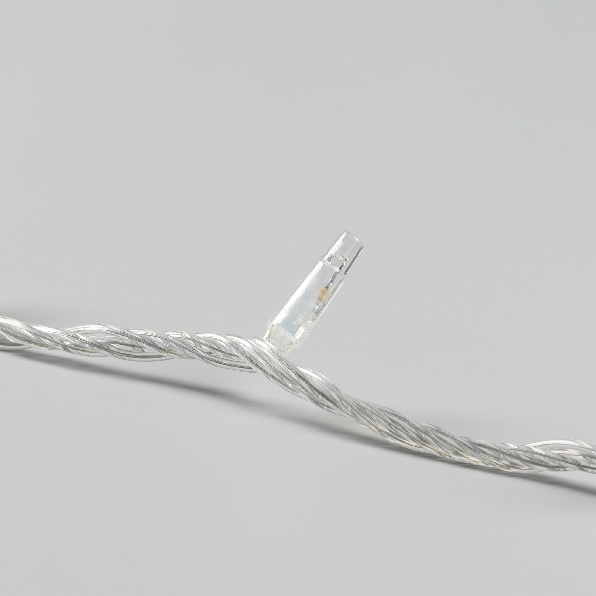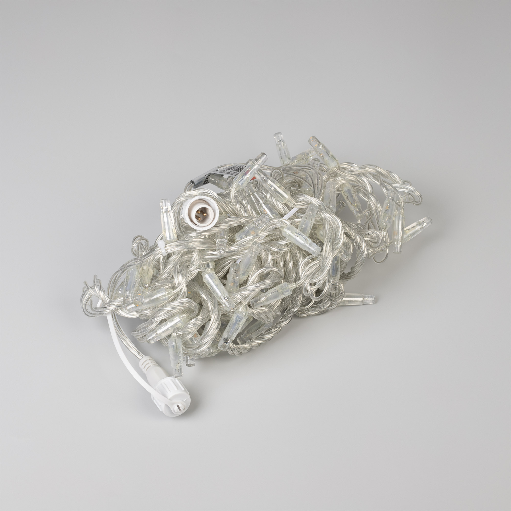 Светодиодная нить Classic. Размер 10000 мм. Цвет свечения RGBY, 100 светодиодов размером 7 мм с динамическими и статическими эффектами свечения с резким световым рисунком (прозрачная вогнутая линза). Смена эффектов и управление осуществляется с помощью контроллера с кнопкой. Провод прозрачный, ПВХ. Питание 230 В, Мощность 7 Вт, защита IP65, применение в помещении и на улице под навесом. Аксессуары для подключения и управления приобретаются отдельно.