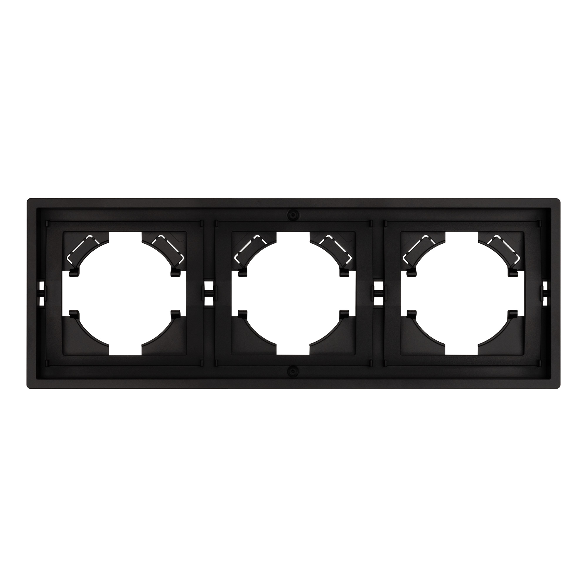 Рамка пластиковая на 3 поста, под встраиваемый механизм. Цвет - черный. Среднего уровня герметичности IP20. Ориентация монтажа горизонтальная. Габаритные размеры: длина 221 мм, ширина 80 мм, высота 9 мм. Гарантийный срок 12 мес.