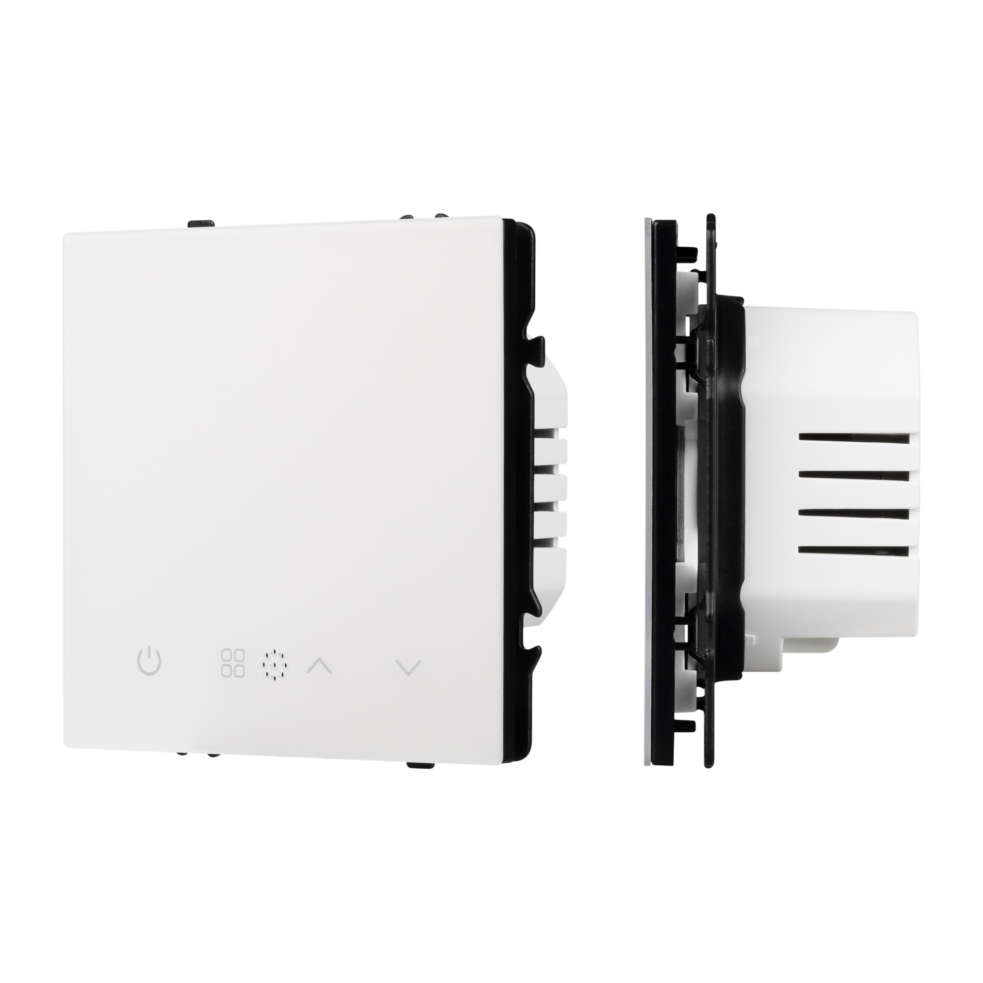 Строгие геометрические линии гармонично сочетаются с функциональностью продуманных механизмов, создавая идеальное решение для дизайн-проектов, где важны как эстетика, так и практичность. Терморегулятор совместим с рамками серии NOBE, создает утонченный минималистичный вид. Скрытый тип монтажа позволяет гармонично встроить в интерьер любого современного дизайн-проекта. Видимая часть механизма выполнена из глянцевого поликарбоната цвета белый кварц, что придает изделию приятные тактильные ощущения и стильный внешний вид. Настройка работы электрического теплого пола осуществляется за счет выбора необходимых значений не посредственно как на самом устройстве, так и при подключении по беспроводной сети Zigbee в приложениях SmartLife и Умный Дом (Яндекс). Суппорт окрашен в черный матовый цвет под основу механизма и выполнен из металла толщиной 1,5мм, что обеспечивает безопасность и уверенность в установке. На каждой стороне суппорта размещены фиксирующие элементы, позволяющие комбинировать механизмы в системы до 5шт как горизонтально, так и вертикально.