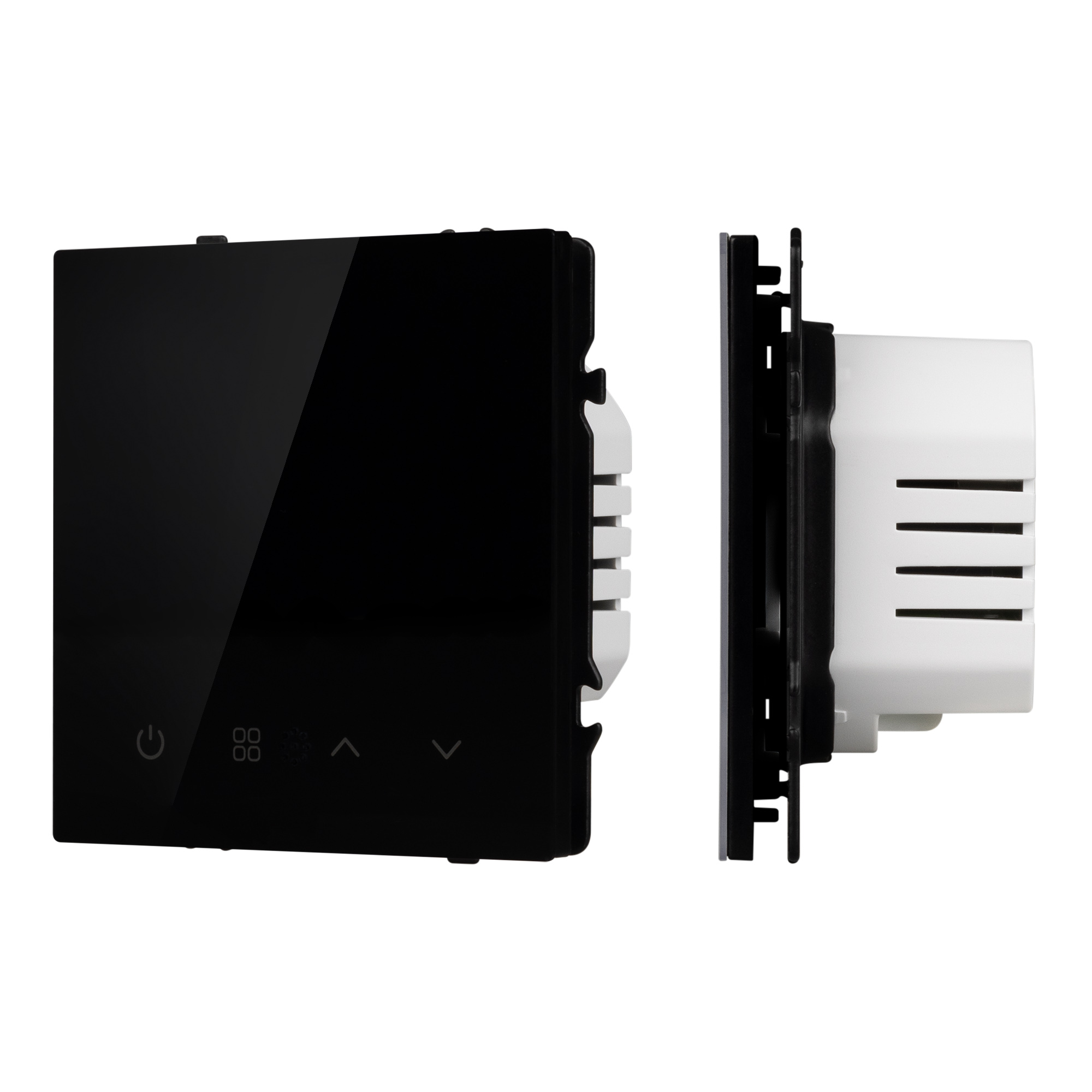 Строгие геометрические линии гармонично сочетаются с функциональностью продуманных механизмов, создавая идеальное решение для дизайн-проектов, где важны как эстетика, так и практичность. Терморегулятор совместим с рамками серии NOBE, создает утонченный минималистичный вид. Скрытый тип монтажа позволяет гармонично встроить в интерьер любого современного дизайн-проекта. Видимая часть механизма выполнена из глянцевого поликарбоната цвета черный оникс, что придает изделию приятные тактильные ощущения и стильный внешний вид. Настройка работы электрического теплого пола осуществляется за счет выбора необходимых значений не посредственно как на самом устройстве, так и при подключении по беспроводной сети Zigbee в приложениях SmartLife и Умный Дом (Яндекс). Суппорт окрашен в черный матовый цвет под основу механизма и выполнен из металла толщиной 1,5мм, что обеспечивает безопасность и уверенность в установке. На каждой стороне суппорта размещены фиксирующие элементы, позволяющие комбинировать механизмы в системы до 5шт как горизонтально, так и вертикально. Терморегулятор оборудован встроенным датчиком контроля температуры и подключаемым внешним датчиком, который обеспечивает защиту от предельно низких и высоких температурах.