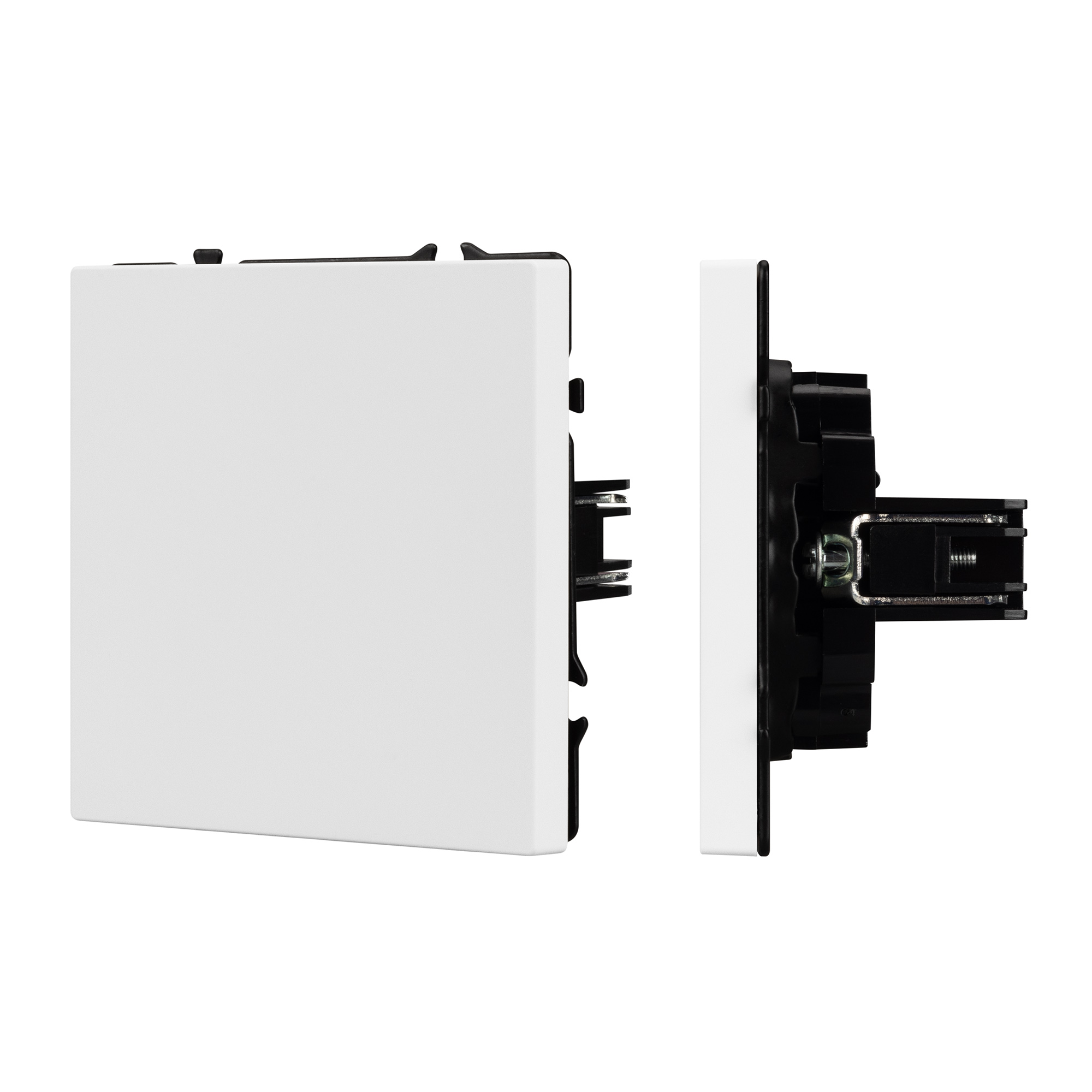 Заглушка предназначена для перекрытия поста под дальнейшее размещение механизма, не имеет питающих элементов и выполняет декоративную функцию. Усиленные распорные лапки двойного захвата надежно фиксируют устройство в установочном подрозетнике круглого сечения диаметром 60мм.