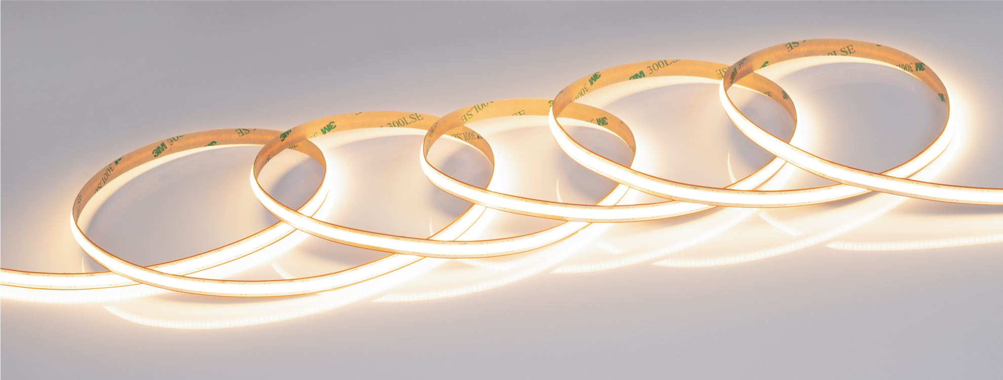 Ленты серии COB за счет заливки люминофором по всей длине образуют равномерное свечение даже без применения рассеивающих экранов.