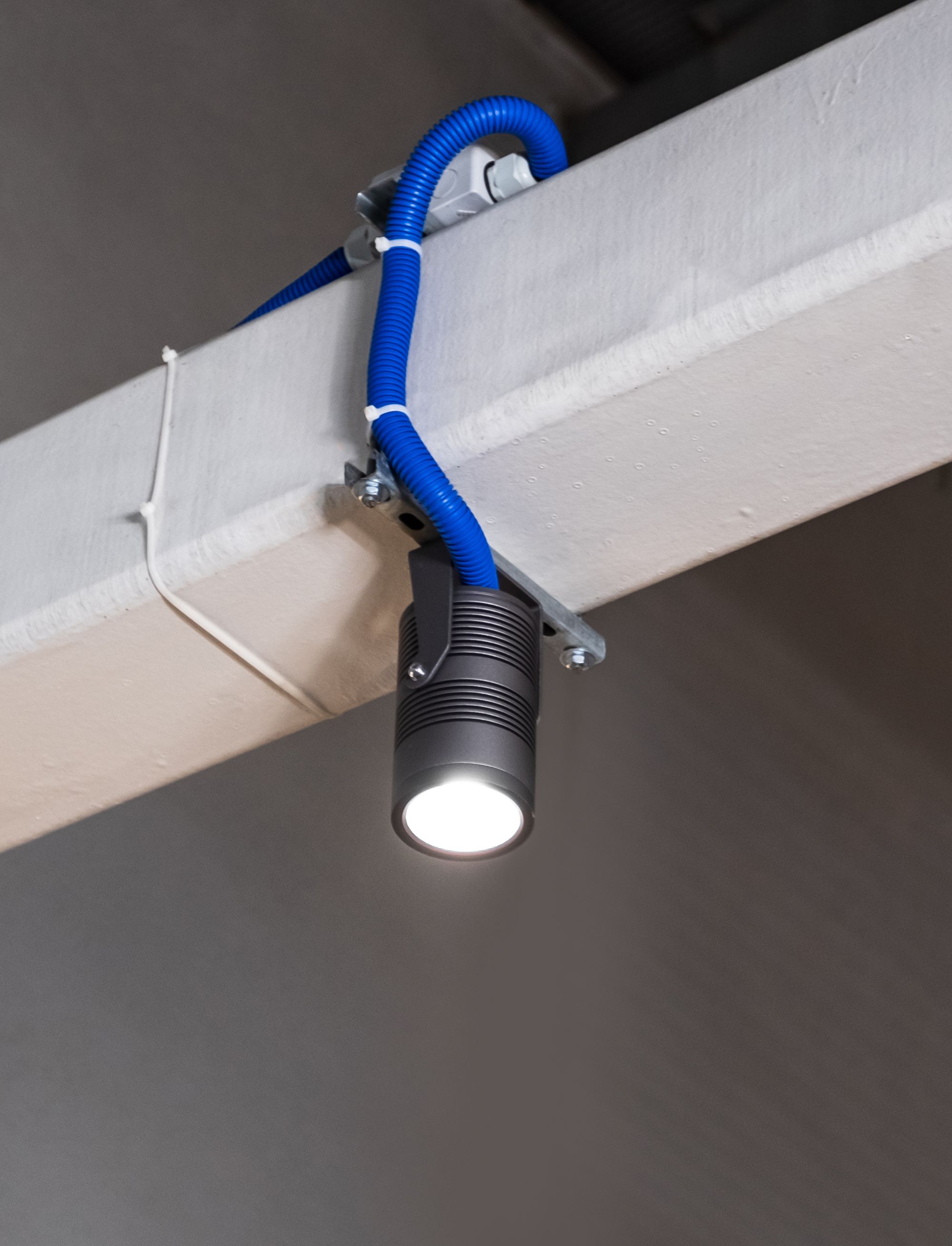 Открытая галерея уличного искусства освещена влагозащищенными ударопрочными светильниками и прожекторами с экраном из закаленного стекла. Вандалозащищенное светодиодное оборудование — идеальное решение для создания безопасного и качественного уличного освещения. Корпус светильников поворачивается, что очень удобно при перенаправлении света на разные объекты выставки. Светильники выполнены в холодной цветовой гамме и гармонично смотрятся в пространства в стиле лофт. Светильники не только выполняют роль основного освещения, но и акцентируют внимание на картинах с помощью интересных световых переходов.